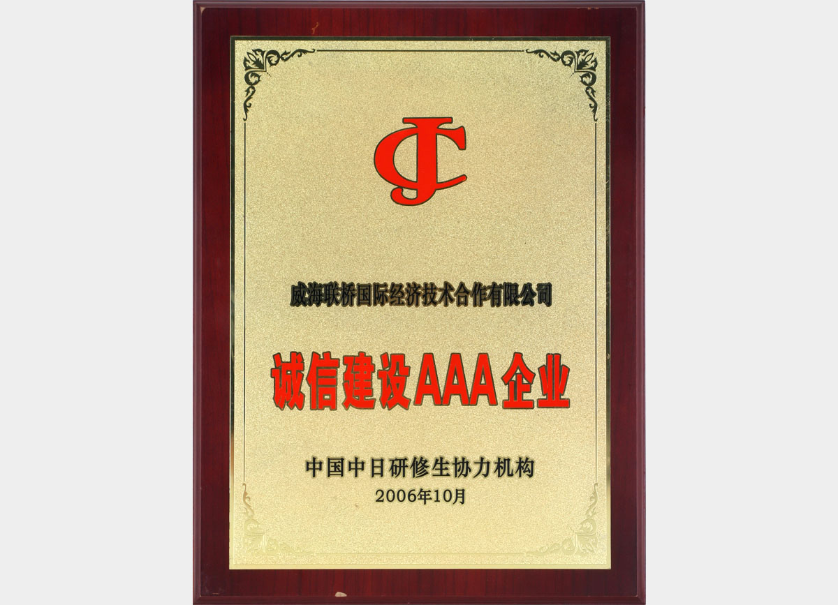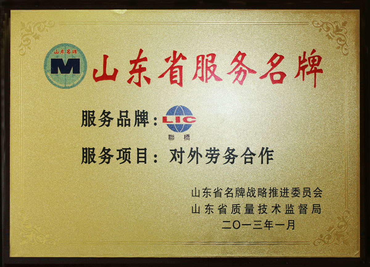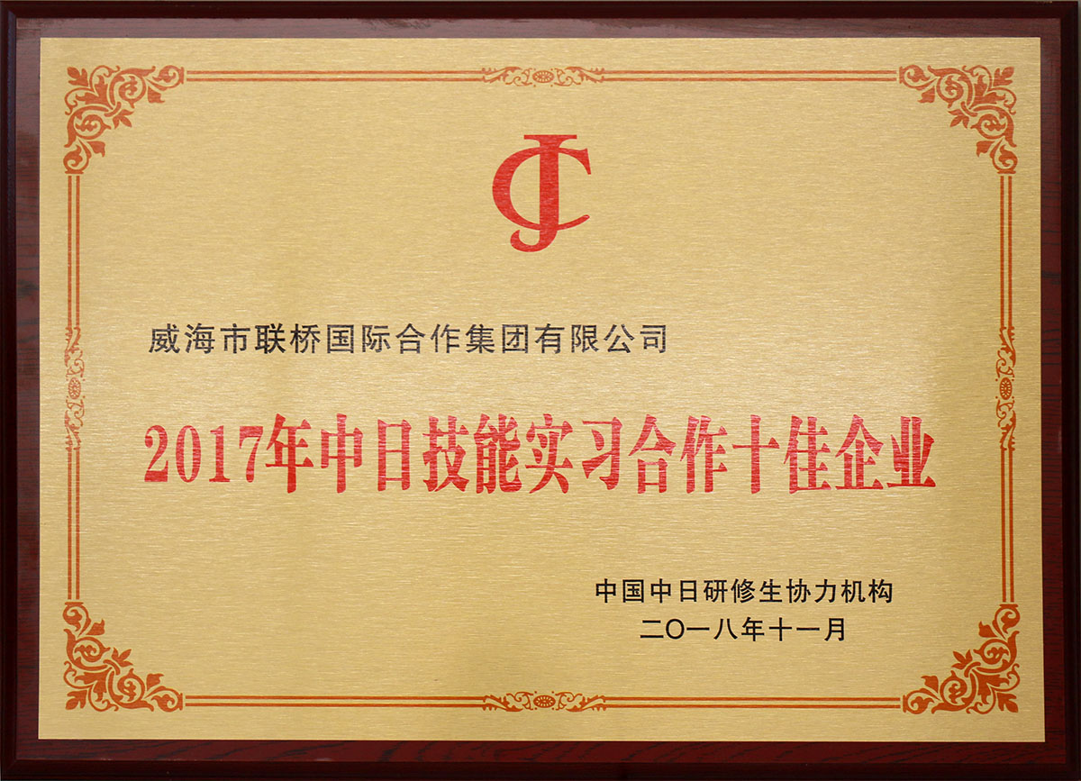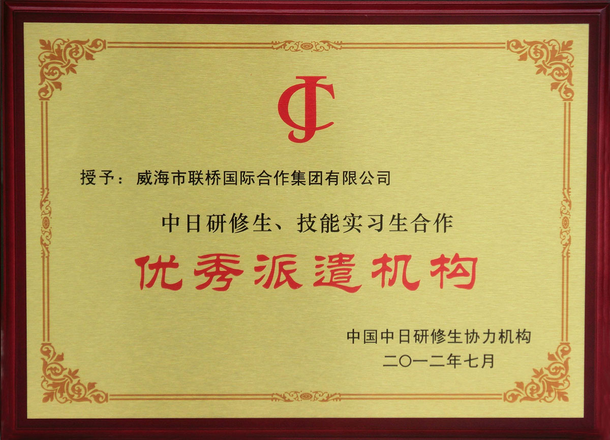 公司擁有中國商務部對外勞務合作經(jīng)營資質,是山東省國際承包勞務商會常務理事、中國對日研修生協(xié)力機構理事單位。并先后獲得“全國對外勞務業(yè)務合作AAA級信用企業(yè)”、“中國中日研修生協(xié)力機構誠信建設AAA級企業(yè)”、“中國對日技能實習生及研修生優(yōu)秀派遣機關”、“山東省外派勞務服務名牌”、“威海市服務貿(mào)易協(xié)會副會長單位”、“全國守合同重信用企業(yè)”、“全國五一勞動獎狀”、“中國馳名商標”、“山東省外經(jīng)貿(mào)先進企業(yè)”、““厚道魯商”五星級上榜企業(yè)”等行業(yè)榮譽。